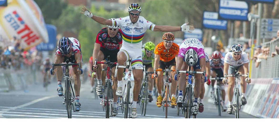 World Champion in 2002 in Zolder, Belgium, with the highest average in history (46.583 km/h), Cipollini also conquered the Milan-San Remo (2002) and was a three-time winner of Ghent-Wevelgem (1992, 1993 and 2002). He has also won an Italian championship (1996) and has three stage wins in the Vuelta (2002). Throughout his career he collected 140 stage victories and was able to win on three continents: Europe, America (stage winner of the 2004 Tour of Georgia) and Asia (stage winner in the 2005 Tour of Qatar).